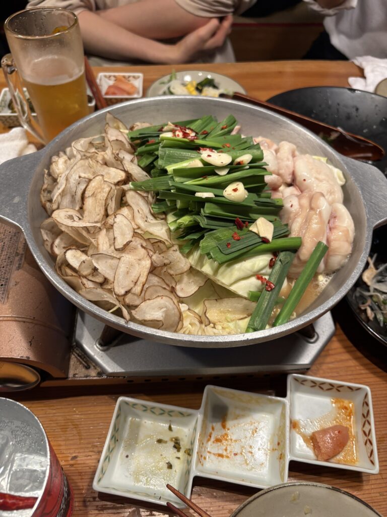 山盛りのもつ鍋をみんなで囲んでおいしく食べました!
